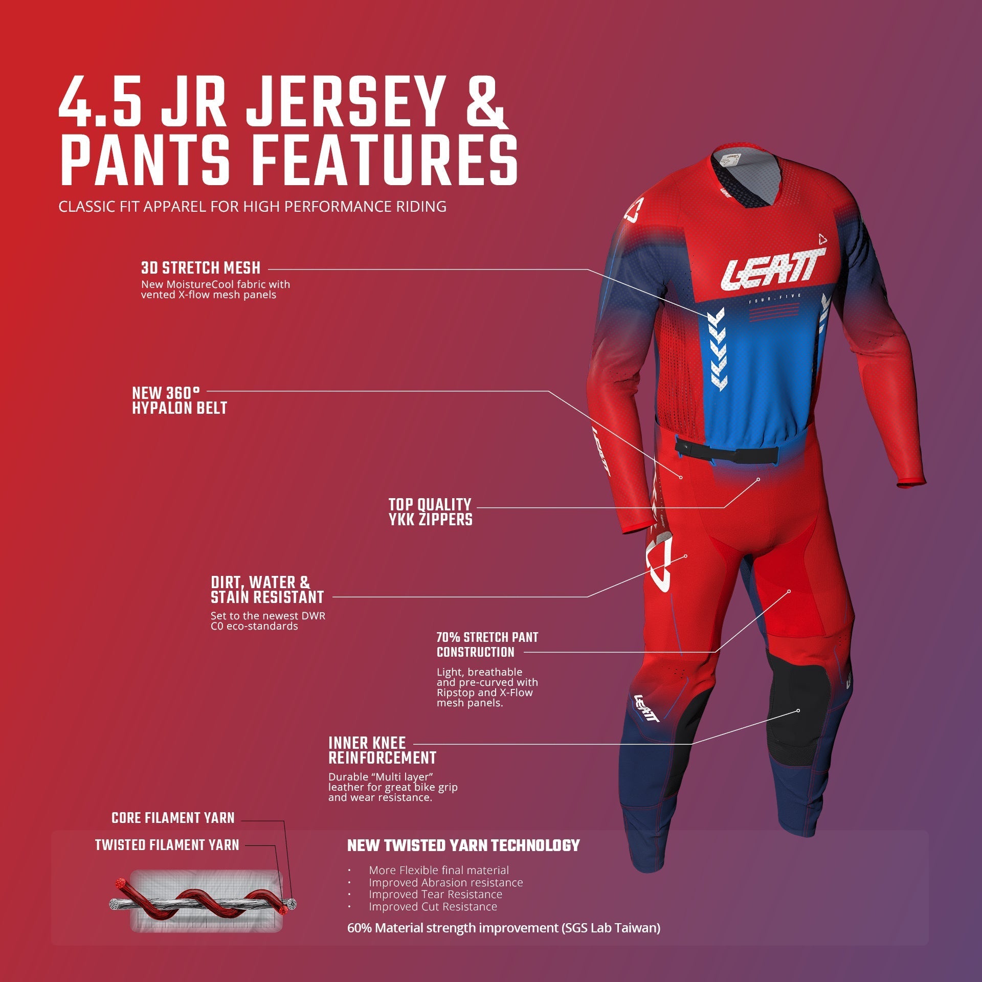 The Moto 4.5 Pant is built for young rippers who need performance they can count on. It delivers durability with reinforced high-wear zones and a comfortable construction that moves with you and stands up to the demands of weekend motos. With a dirt- and water-repellent finish and a secure 360° Hypalon Waistlock system, the 4.5 Pant brings proven comfort and confidence to every ride.