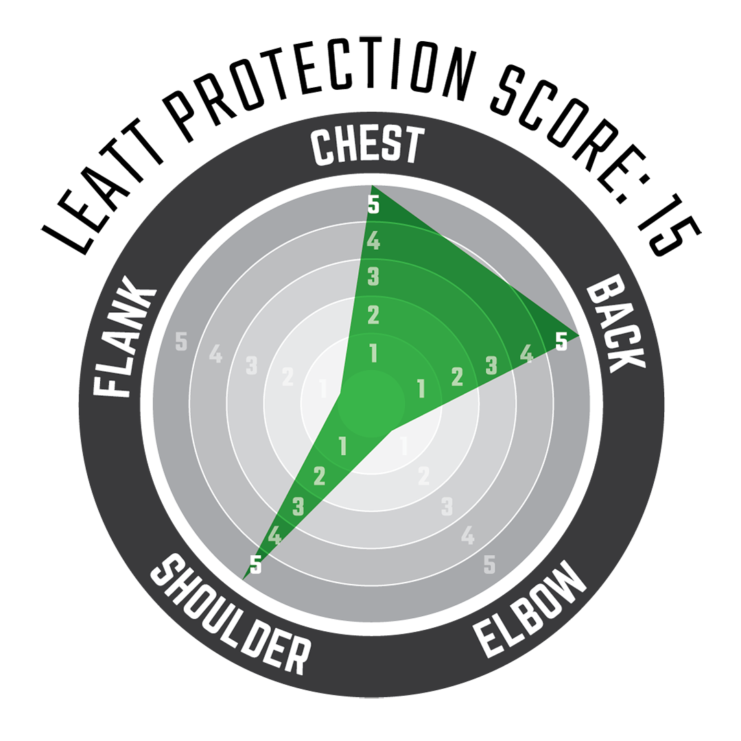 Has a Leatt protection score of 15 out of 25, next step up in Chest Protection level is the 5.5 Pro HD or 6.5 Pro.